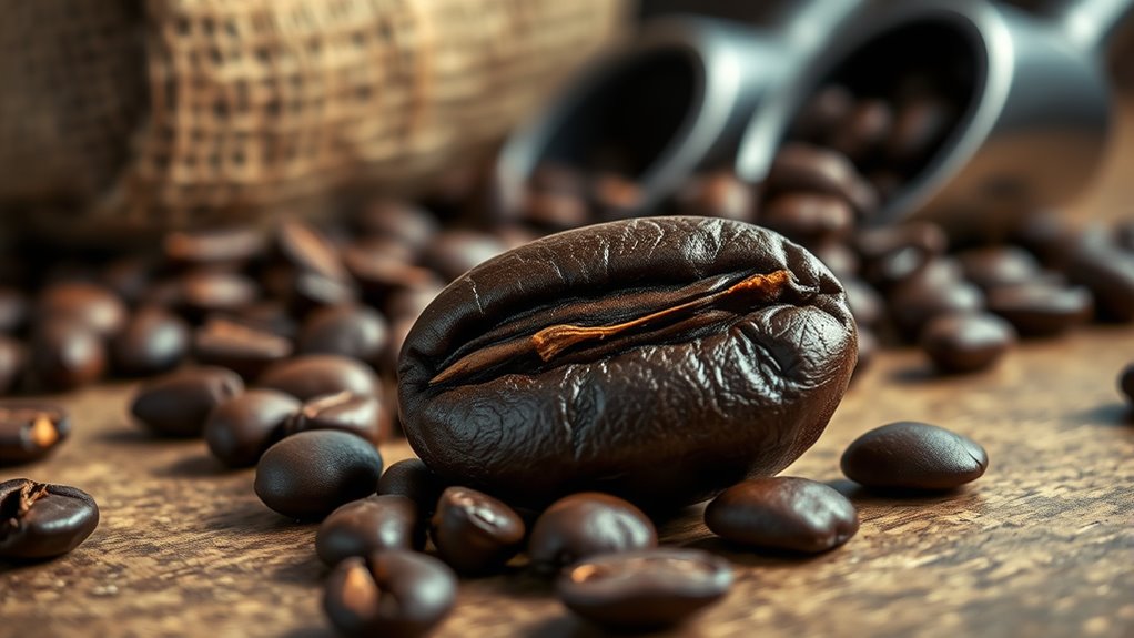You might wonder if coffee type affects aging; it does. Arabica beans generally offer better flavor retention but are more delicate, meaning they can lose freshness faster. Robusta beans are more durable, with higher bean durability, so they tend to age better over time. Your choice impacts how long your coffee retains flavor, especially if stored improperly. Understanding this helps you enjoy fresher-tasting coffee longer.