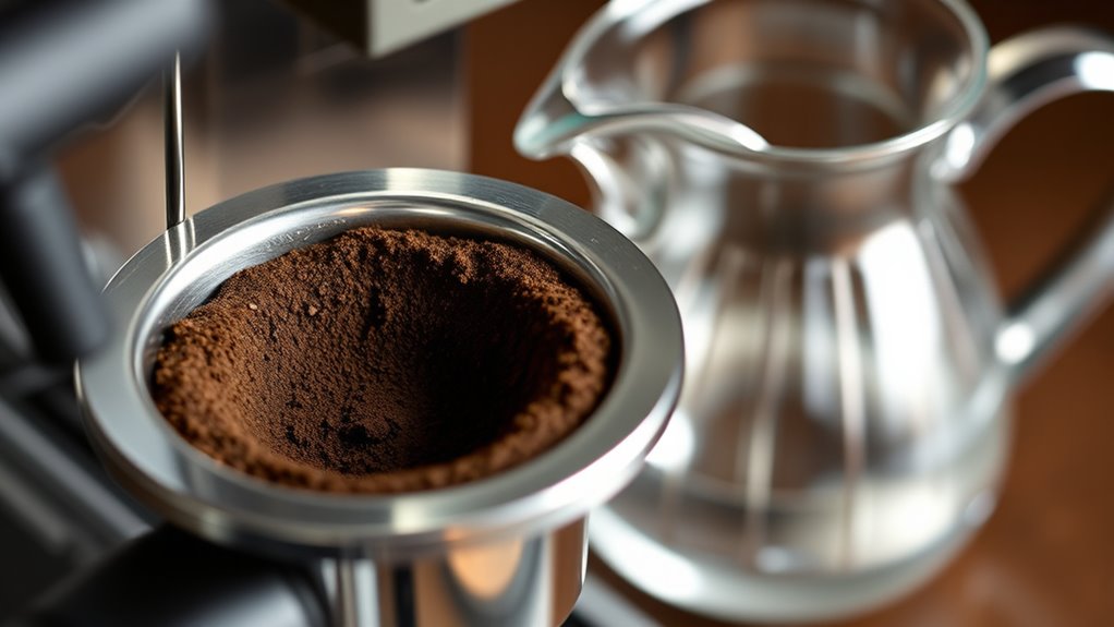 Water chemistry is central to this process. The mineral content, pH level, and overall quality of your water directly affect how efficiently it interacts with coffee grounds. Hard water, rich in minerals like calcium and magnesium, can enhance extraction but might also cause scaling in your equipment if not managed properly. Conversely, soft water may lack the minerals necessary for ideal flavor extraction, resulting in a flat or dull shot. Adjusting water chemistry to suit your specific setup can make a noticeable difference in the flavor profile and freshness of your espresso. Using filtered or specially formulated water for brewing can help maintain consistency and prevent mineral buildup, guaranteeing your machine operates smoothly and your coffee tastes its best.