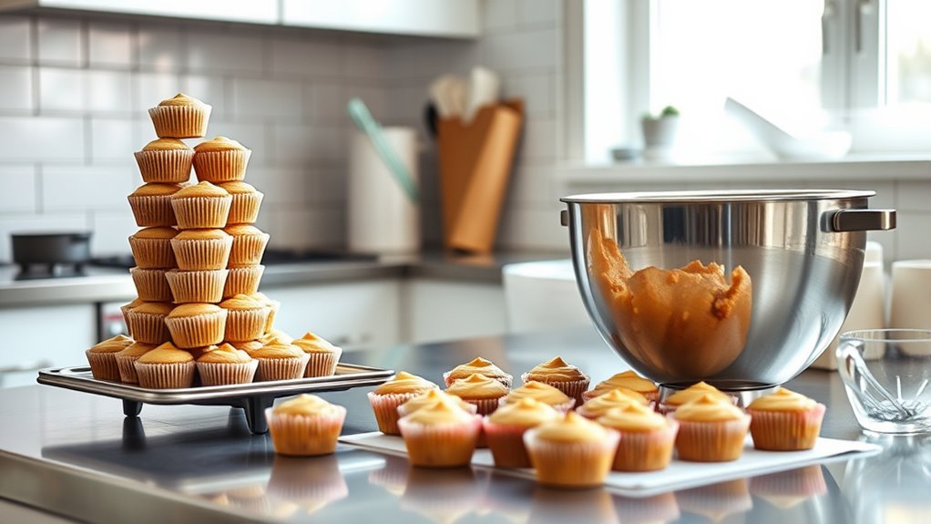 When scaling recipes from a single cup to serve a crowd, you need to carefully modify ingredients, seasonings, and equipment. Increase or decrease quantities gradually, tasting to maintain flavor balance. Use appropriately sized cookware and monitor cooking times, as larger portions may need more time. Proper planning ensures your dish stays flavorful and consistent at any size. Keep these tips in mind, and you’ll learn how to master the perfect scaled-up recipe.