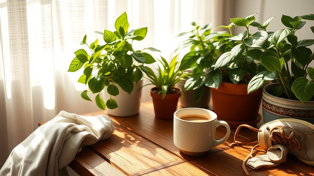These rituals boost your mental health by promoting mindfulness practices, helping you stay present and reduce stress. Taking a walk clears your mind and encourages relaxation, while warmth from a cozy beverage offers comfort and stability. Sharing these moments with others enhances social connection, which improves mood and resilience. Together, these rituals create a calming routine that lowers anxiety and nurtures your overall well-being throughout the day.