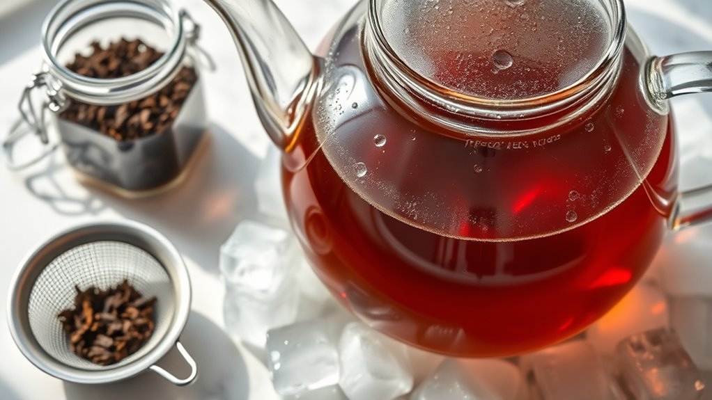 Safety is also an important consideration. Cold-brewing reduces the risk of over-extraction, which can cause bitterness, but it’s vital to keep your brewing equipment clean to prevent bacterial growth. Use fresh, filtered water and wash all containers thoroughly before use. Once steeped, strain out the tea leaves or remove the tea bags, and refrigerate the brewed tea if not consumed immediately. It’s best to enjoy your cold-brewed tea within 24 to 48 hours to guarantee freshness and safety. Proper storage, combined with good hygiene and quality ingredients, guarantees a delicious, safe, and satisfying cold tea experience every time.