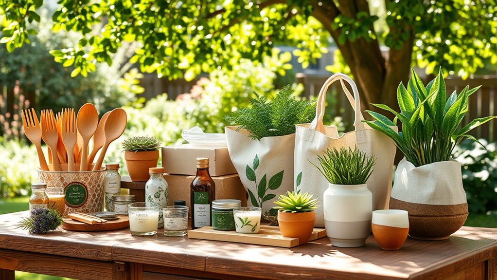 Choosing eco-friendly gifts in 2025 means paying close attention to the materials used, as they profoundly impact the environment. I look for items made from sustainable resources like bamboo, recycled wood, or plant-based fibers, which help reduce pollution and conserve resources. Selecting products crafted from organic, GMO-free, or naturally derived materials ensures fewer chemicals are involved, supporting ecological balance. Recycled and upcycled materials are also key, as they minimize waste and lessen landfill burden. I also prioritize biodegradable packaging and non-toxic dyes, which break down naturally and don’t pollute. Renewable resources such as cork, hemp, and bamboo are ideal because they grow quickly and can be replenished easily. These choices make my gifts not only thoughtful but also environmentally responsible.