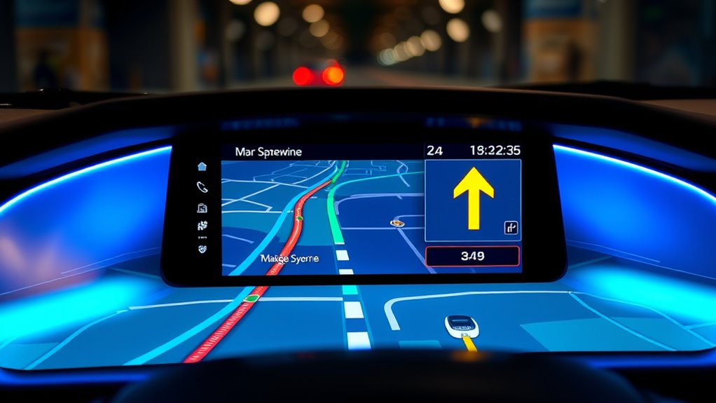 Vehicle profile customization plays a essential role in ensuring your GPS navigation system provides safe and accurate routing. By inputting specific details like size, weight, height, and width, the device can tailor routes to avoid low bridges, narrow streets, and weight-restricted roads. Many systems support multiple vehicle profiles, allowing me to switch between settings for cars, trucks, RVs, buses, or bikes, optimizing each trip. Proper setup prevents the system from directing me onto unsuitable or dangerous routes, such as steep grades or restricted lanes. Accurate profile input not only enhances safety but also improves route precision, helping me stay compliant with road restrictions. This customization reduces navigation errors, making trips more efficient and stress-free. It’s an essential feature to consider when choosing a GPS system.