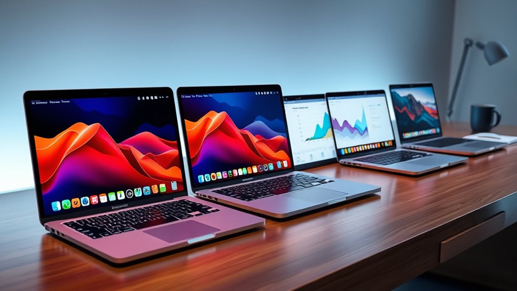 If you’re looking for top-tier performance, choosing a MacBook Pro with 32GB+ unified memory is the way to go. Did you know that models with these specs can handle up to 50% more demanding tasks than their lower-memory counterparts? Whether for professional workflows or creative projects, investing in these powerful machines truly release your potential. So, consider your needs carefully—these models are built to keep you ahead in 2025 and beyond.