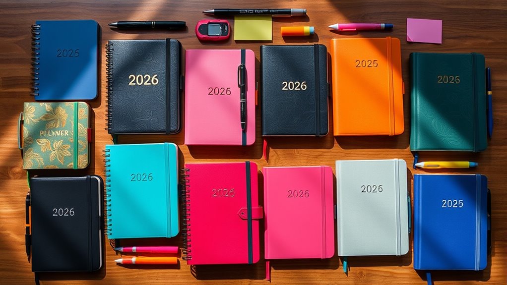 Choosing the right planner can boost your productivity by up to 25%. With so many great options for 2026, it’s all about finding one that fits your style and needs. Remember, a well-organized year starts with a planner that motivates you to stay on track. So, pick the one that feels right—you’ll be surprised how much easier staying ahead becomes when your schedule is clear and inspiring.