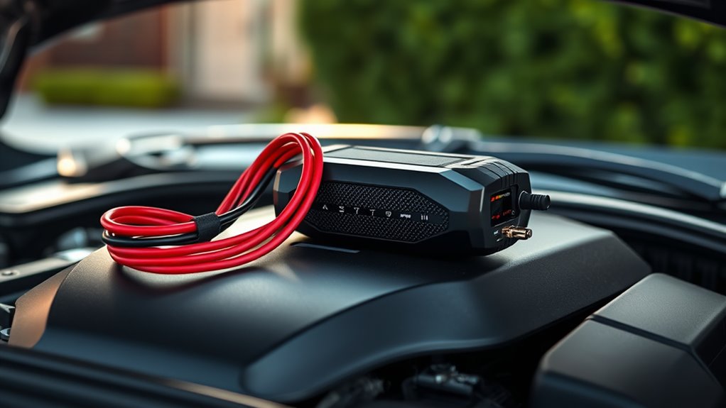 Did you know that properly maintained batteries last up to 50% longer? To keep my jump starter in top shape, I store it in a cool, dry place and keep it fully charged, especially if I won’t use it for a while. I also periodically test it and follow the manufacturer’s instructions for maintenance. These simple steps guarantee my device stays reliable and ready whenever I need it.