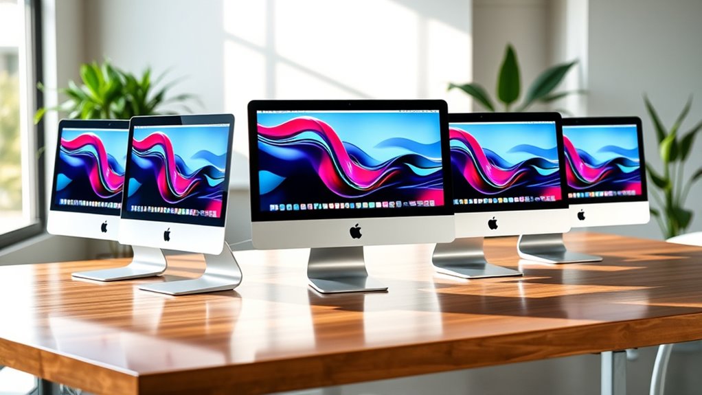 If you’re exploring the best renewed iMac desktops in 2025, I recommend considering models with the latest M4 chip and stunning 4.5K Retina display. These offer fantastic performance, sleek design, and excellent value. They’re perfect for creators and professionals alike. By choosing a renewed one, you get premium features at a better price. Stay with me, and I’ll share the top six options that stand out this year.