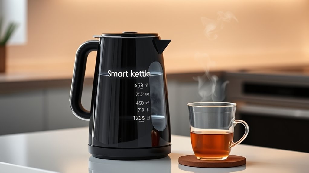 I’ve looked into this, and yes, many smart kettles do have safety features like automatic shut-off to prevent overheating. I was surprised to find how much emphasis manufacturers place on safety, ensuring the kettle turns off if it gets too hot or runs dry. It’s reassuring, especially if you’re busy or forgetful, knowing that your kettle is equipped to prevent accidents and keep you safe while enjoying your favorite hot drinks.