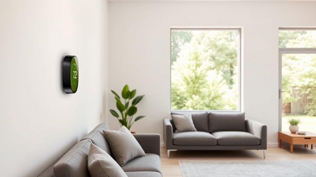 Smart thermostats considerably boost long-term energy savings by learning my schedule and adjusting the temperature accordingly. I notice lower utility bills because they optimize heating and cooling, reducing waste. Plus, I can control them remotely, so I avoid unnecessary energy use when I’m away. Over time, this smart technology helps me save money and reduces my carbon footprint, making my home more eco-friendly and efficient.